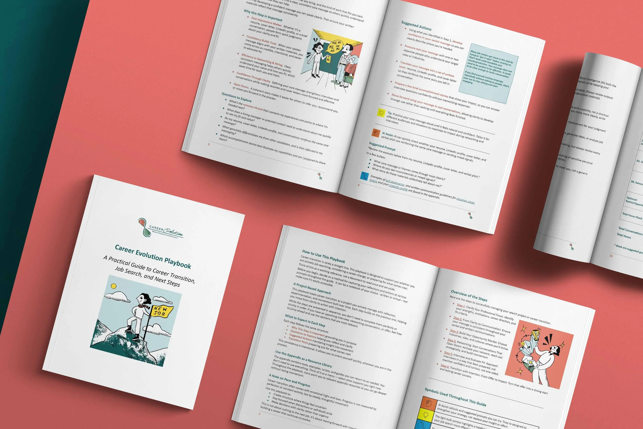 Each client actively pursuing job search or career change will receive a copy of my proprietary Career Evolution Playbook PDF. It’s a practical guide for your career journey, filled with practical tips and finding your way through transition.
